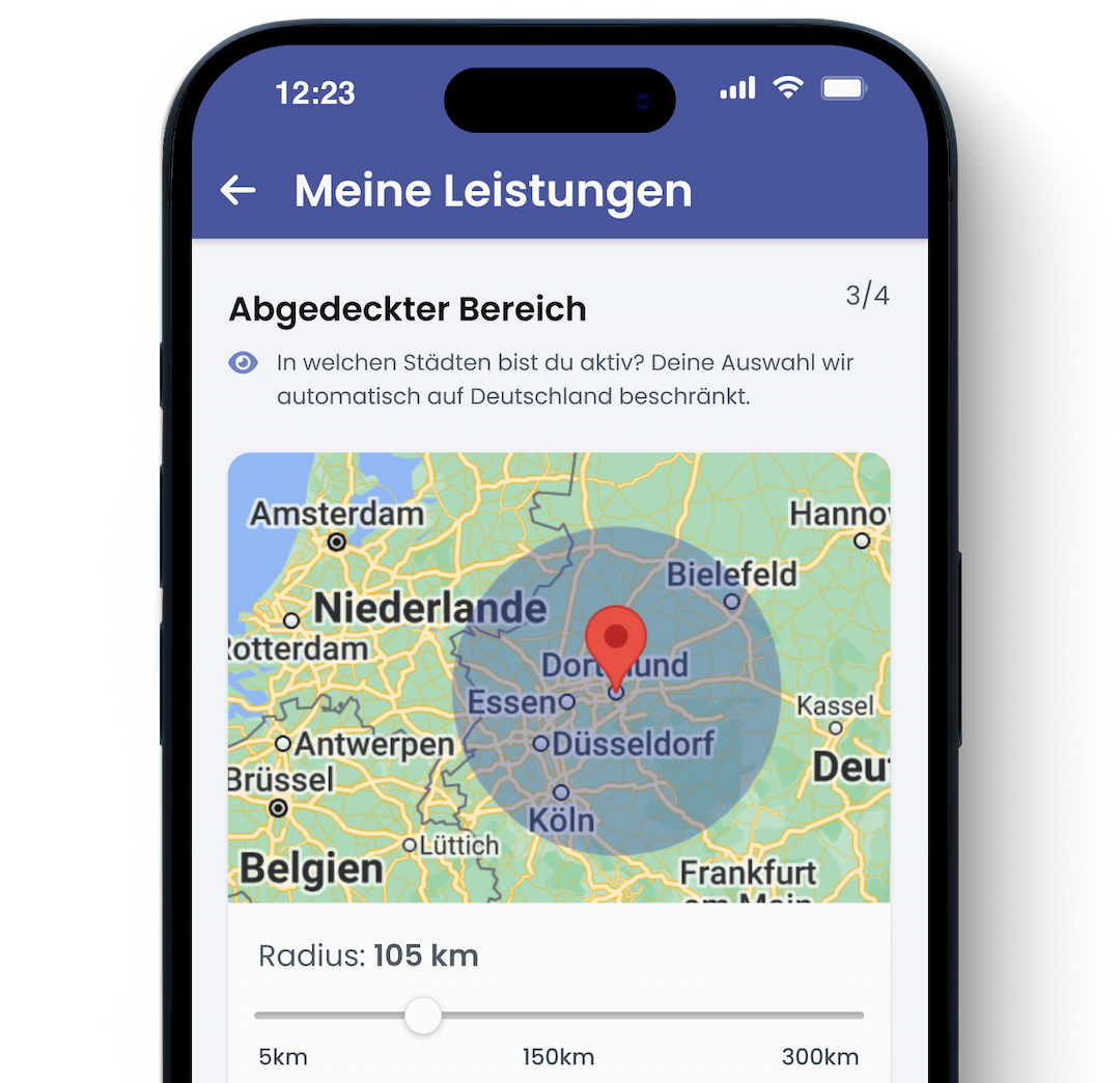 Wähle deinen Stundensatz, Einsatzbereich und deine Verfügbarkeit, um deine Aktivität und Einkommen zu optimieren