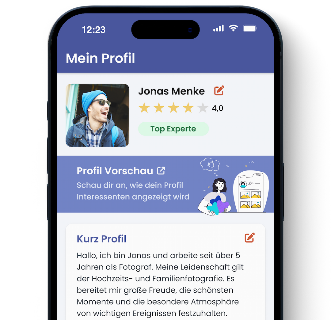 Ja! Die Anmeldung, das Erstellen deines Profils, die Kommunikation mit Kunden sowie das Versenden von Angeboten sind zu 100 % kostenlos und unverbindlich.