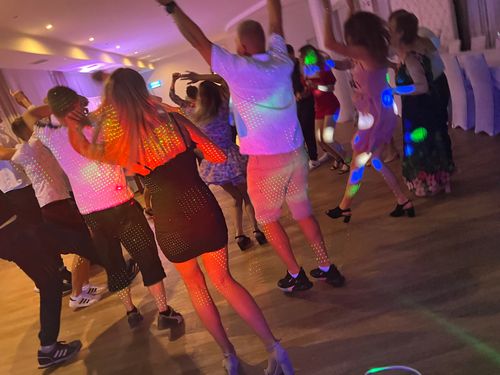 Meine Erfahrung, Leidenschaft und mein Gespür für den perfekten Moment zeichnen mich aus. Ich gehe individuell auf Ihre Wünsche und die Stimmung Ihrer Gäste ein und kombiniere Musikwünsche geschickt mit meiner eigenen Playlist. Mein Fokus liegt immer darauf, die Tanzfläche zu füllen und jeden Gast mitzunehmen. Zudem bringe ich modernste Ton- und Lichttechnik mit, die für perfekte Klangqualität und eine stimmungsvolle Atmosphäre sorgt.