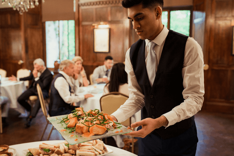 Wie viel Servicepersonal ist für die Umsetzung des Events notwendig? In der Regel stellt ein Caterer das Küchenpersonal und das Servicepersonal. Plane neben dem Servicepersonal fürs Catering auch Sicherheitspersonal, Hostessen, Gaderobenpersonal und DJ ein.
