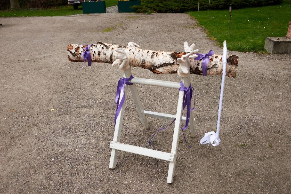 Auch ein Klassiker ist das Durchsägen eines Baumstamms als Überraschung nach dem Standesamt. Das Brautpaar bekommt dabei eine mehr oder weniger stumpfe Säge ausgehändigt und muss damit gemeinsam im Teamwork den Baumstamm zersägen. Hier beweisen sie Geduld und ihre Teamstärke. Dabei werden sie natürlich kräftig von den übrigen Gästen angefeuert.