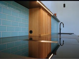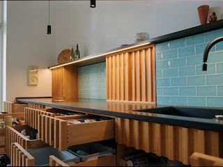 Planung, Herstellung und Montage von individuellen Kücheneinrichtungen, einschließlich Schränke, Arbeitsplatten und Kücheninseln.